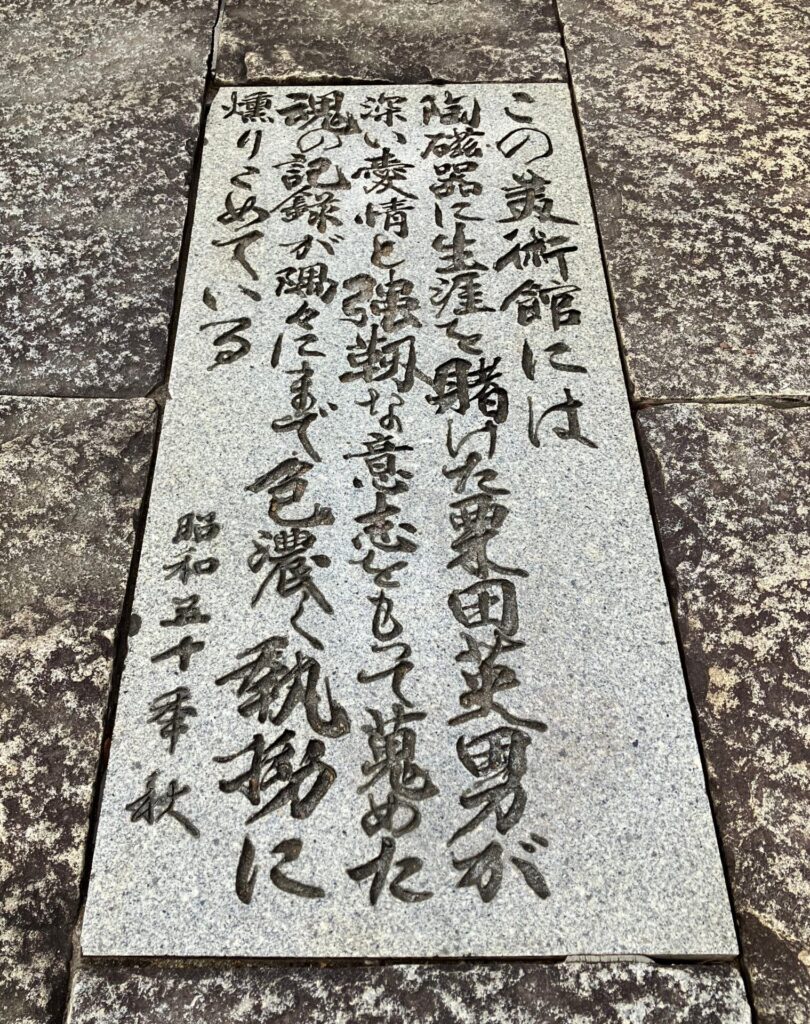 写真に写っているスーツ姿の男性が創立者の栗田英男氏だが、今回もうひとつ勉強になったのが、伊万里の有名な赤絵の技法は、初代柿右衛門が創始したと伝えられているが,これは重大な誤りである、と栗田氏が断言していることだ。