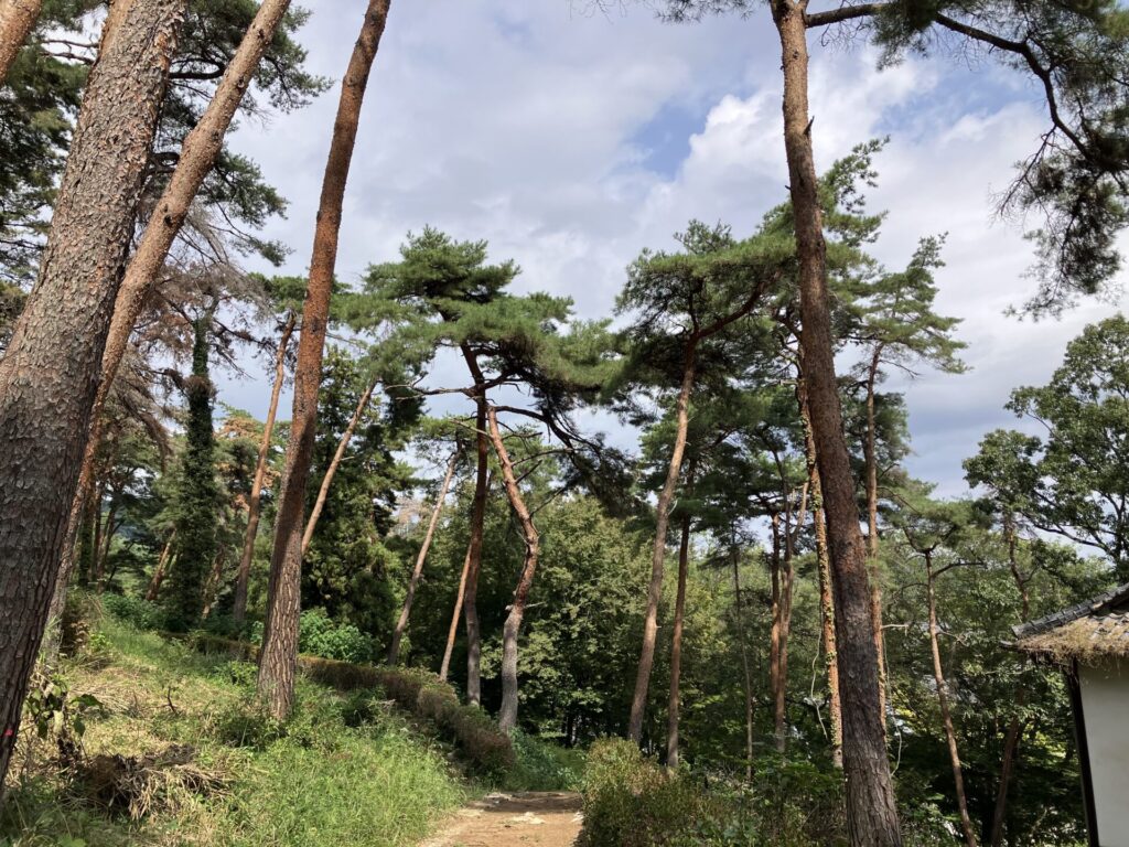 三万坪の敷地とのことで、広すぎて時間の関係で全ては回れなかったが、大きな松の木がたくさんあって美しかった。↓