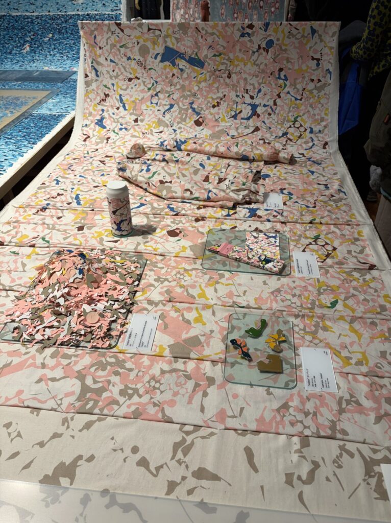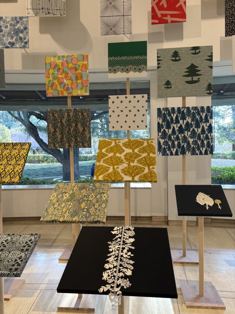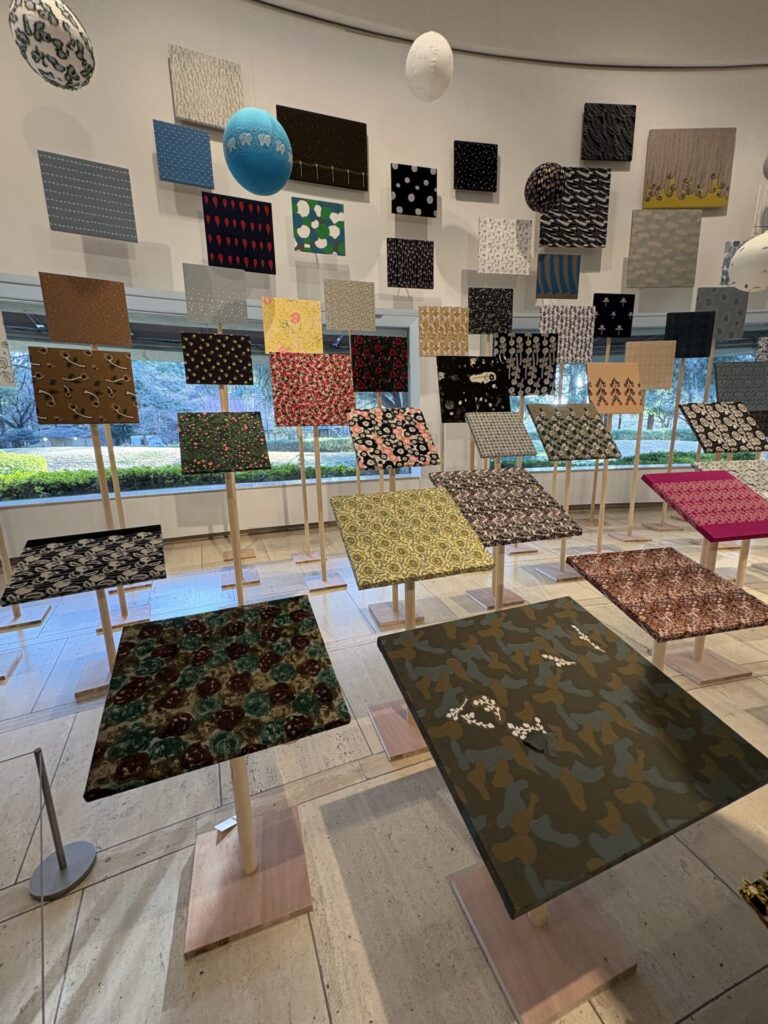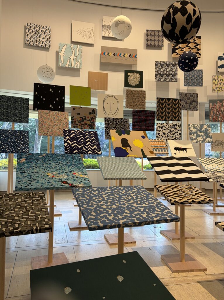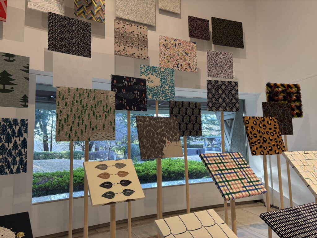 「ミナ ペルホネンは、ブランドとして活動をはじめた1995年から、洋服をフォルムからデザインするのではなく、布地から作りはじめるという姿勢を貫いてきました。そしてこれまでにデザインされたテキスタイルの図案は、1000種を超えます。」という説明があった。