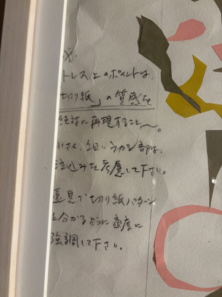 surplusというテキスタイルだが、鉛筆で書かれた注意書きを熟読してしまった。↓