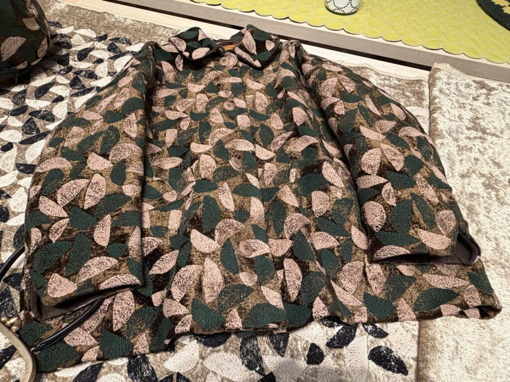 一体誰がこんなコートを着こなせるのか?と思うが、このforest paradeができた時、皆川さんは、もうデザイナー人生、終わっても良いかなと思った、と番組の中でコメントされていた。