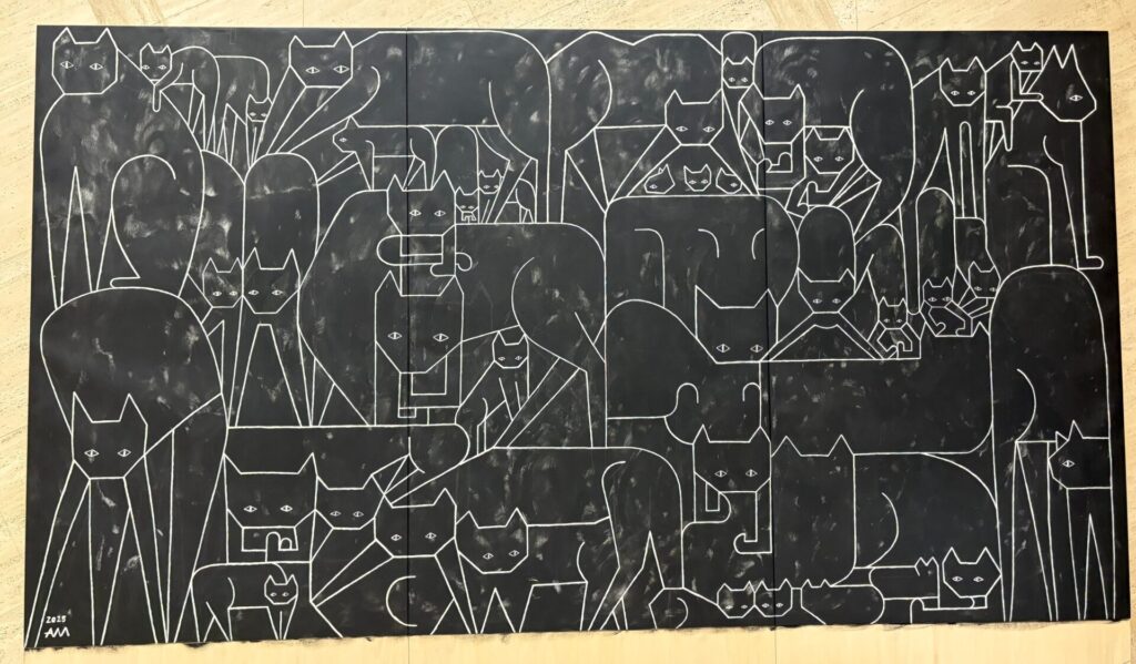 黒い布テープを細く割いて線を描いた”taba”(タバ) ↓
