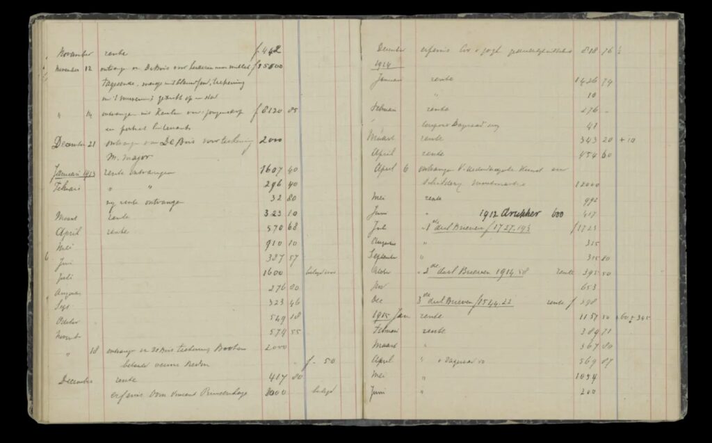 「当初は夫婦の家計簿で、1889年に新婚のテオとヨーが使い始めた。食料品の購入や洗濯女への支払いなど日々の支出に加え、テオから兄フィンセントへの毎月の送金額や画材の購入についても記録されている。テオの死後、会計簿はヨーが引き継ぎ使い続けた。ヨーがファン・ゴッホ作品の売却を細かく記録したことで、ファン・ゴッホ研究にとっても極めて貴重な資料となった。」とのことである。2002年には、この会計簿の注釈付きの学術書が出版され、ファン・ゴッホが描いた170点以上の油彩画と紙に描かれた作品44点が特定されたのだそうだ。