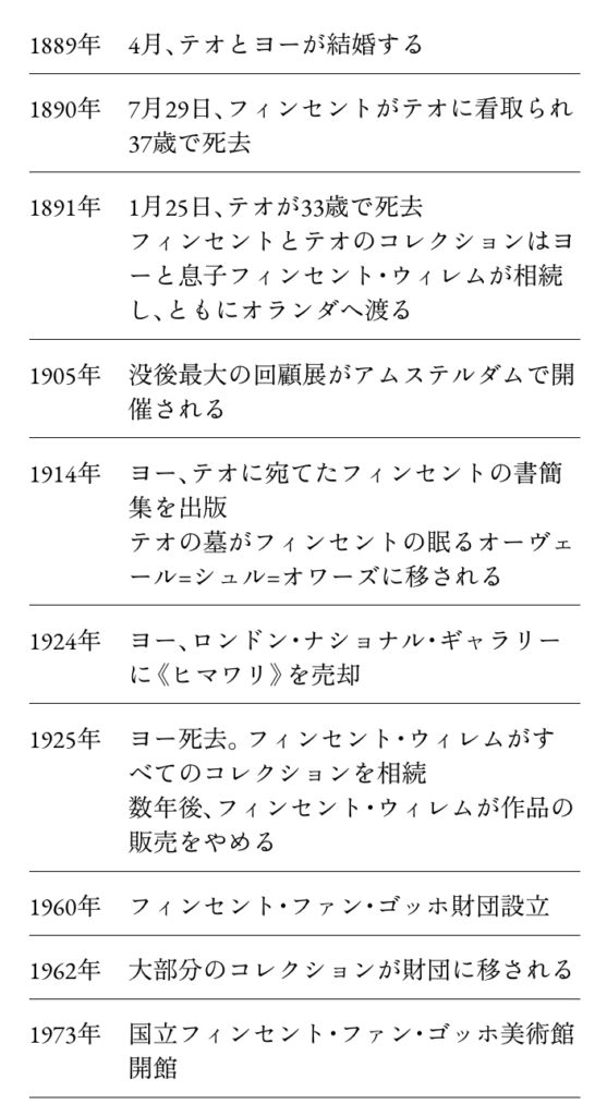 ヨーはもともと美術分野では素人だったが、テオが亡くなった時にまだ1歳にもなっていなかった息子フィンセント・ウィレムとともに膨大な数のファン・ゴッホの油彩画や素描、テオが保管していた兄から18年にわたって届いた手紙も、シングルマザーになった28歳の時にすべて相続し、しだいに近代美術、美術館や個人収集家の世界、美術取引の仕組みについて深い洞察力を身につけていった、とのことなのだが、1905年に没後最大の回顧展がアムステルダムで開催されるまでに14年の歳月が経っている。簡単な道のりではなかったことが想像できる。