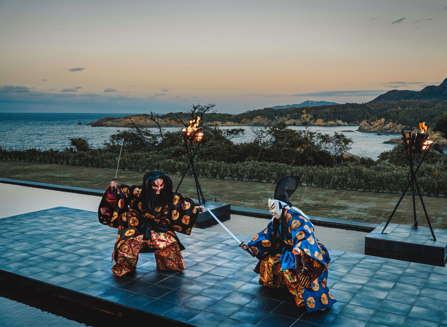 さて、夕食後の楽しみは、島根に伝わる伝統芸能「石見神楽」だ。↓