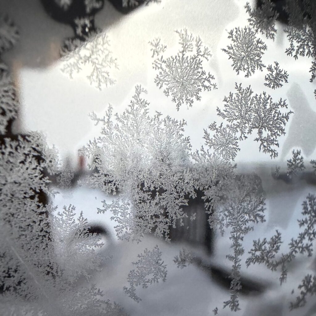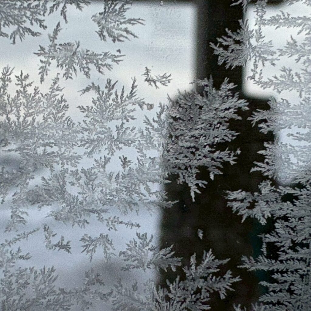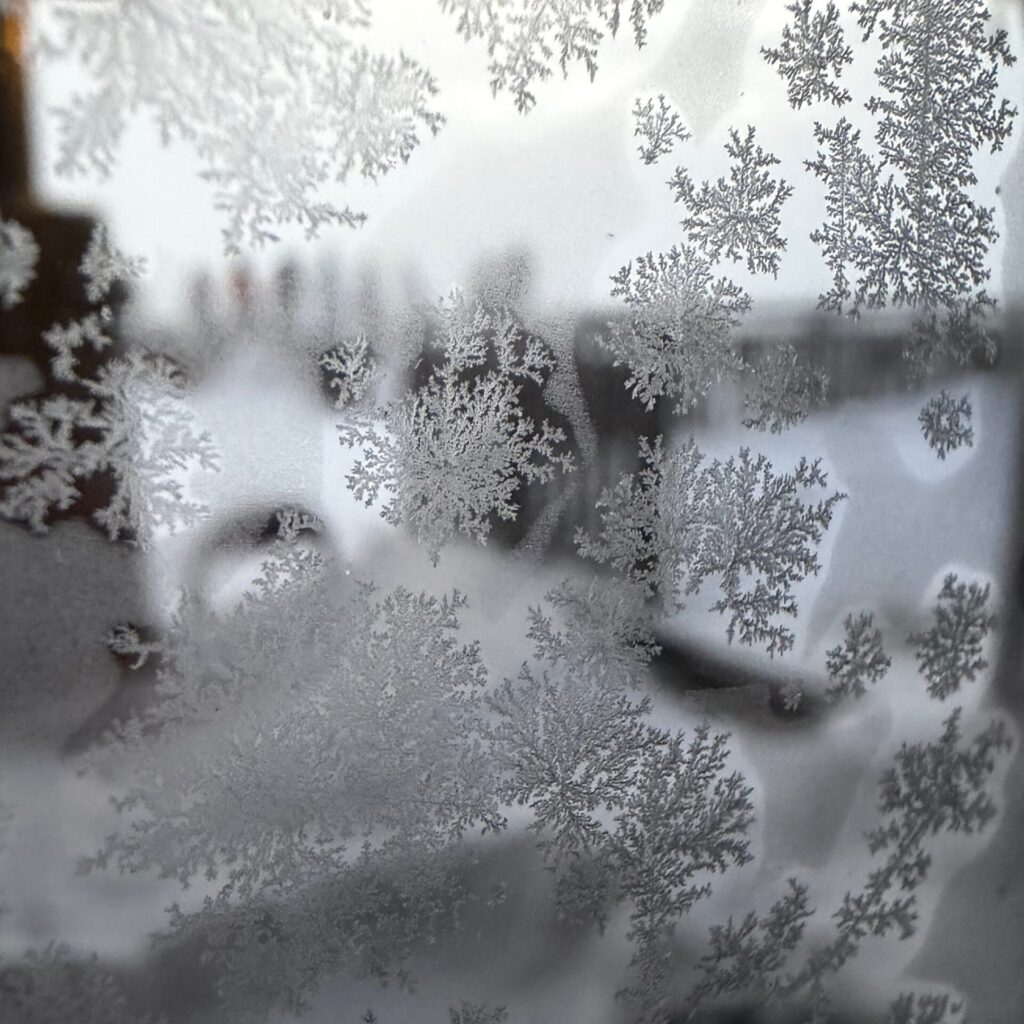 窓ガラスが凍っている。↓