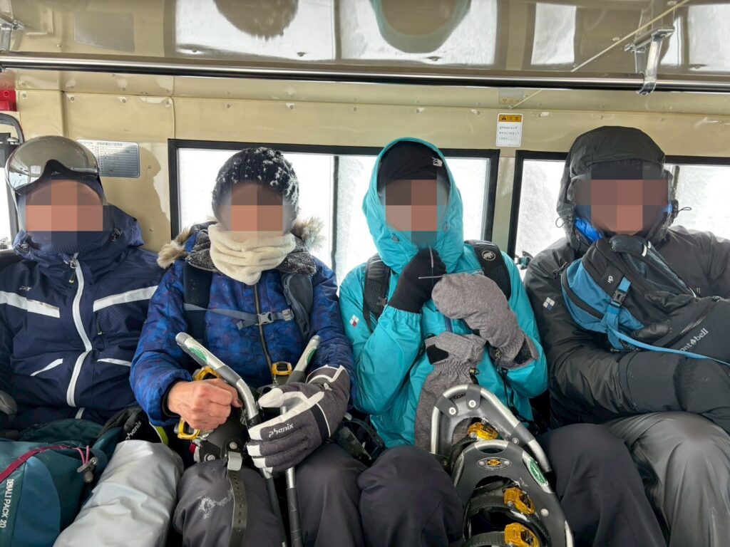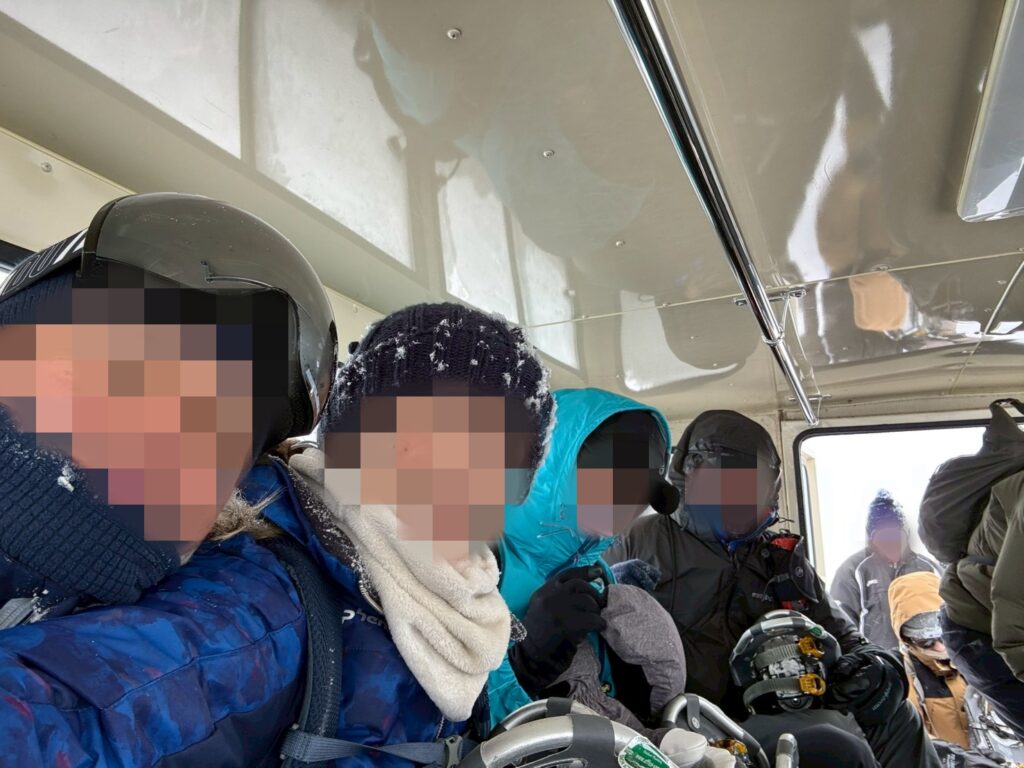 みんなで雪上車に乗り込んでひと安心。↓
