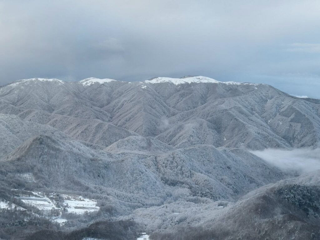 晴れていれば、こういう山々が眺められるはずなのだが、、、。↓