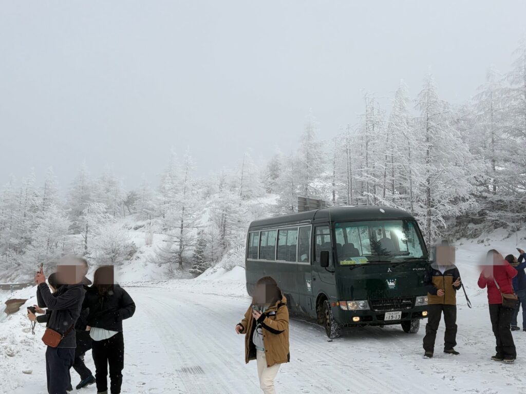 途中でバスを停めてくれて撮影タイム。美しいがとにかく真っ白である。↓