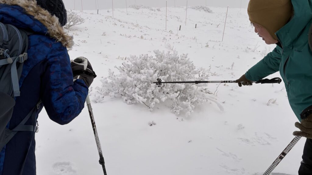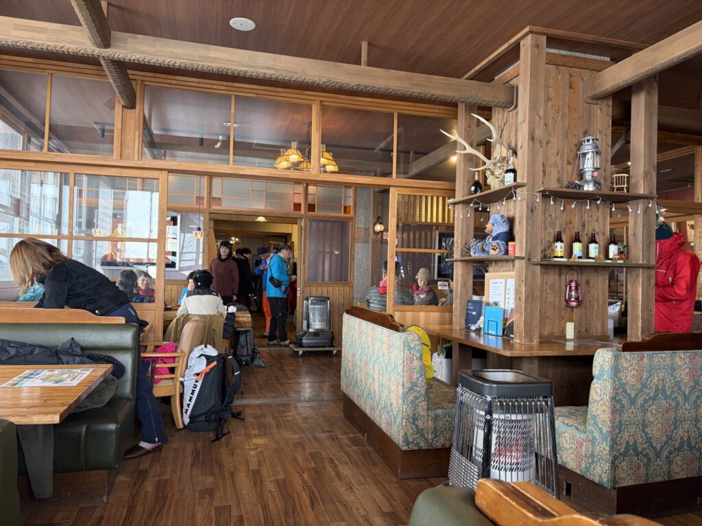 日本海側から来る雪雲が北アルプスにぶつかり、その際に水分が落ちるので、日本海側の雪は湿気があり重いが、長野の雪は軽いパウダースノーになるのだ、とガイドの山﨑さんが説明してくれた。