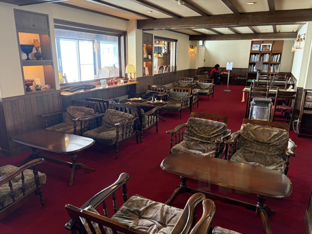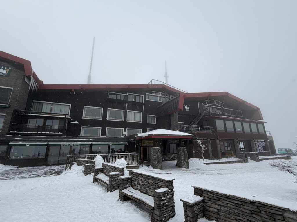 こんな山の頂上にあるにもかかわらず立派なホテルで現在は46室あるようだが、最初は以下の通り、昭和28年に避難小屋として作られたのだそうだ。詳細は歴史を参照。