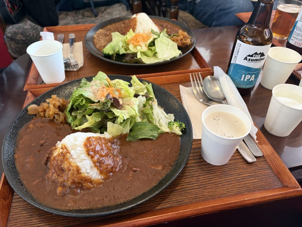 お昼はカフェでビールを一杯飲みながら、美味しいカレーをいただいた。↓