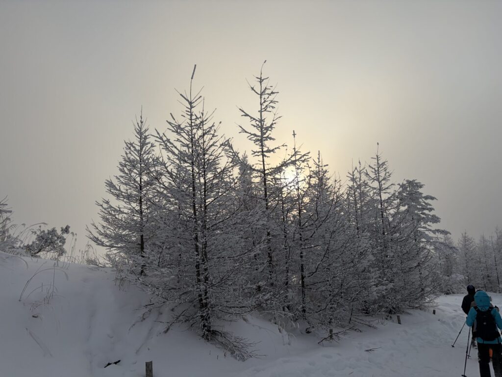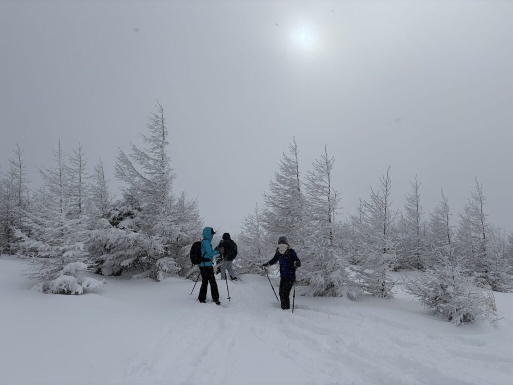 スノーシューで歩くのにもっと苦労するかと思ったら、道具が良く出来ていて、思っていたより簡単に歩けた。