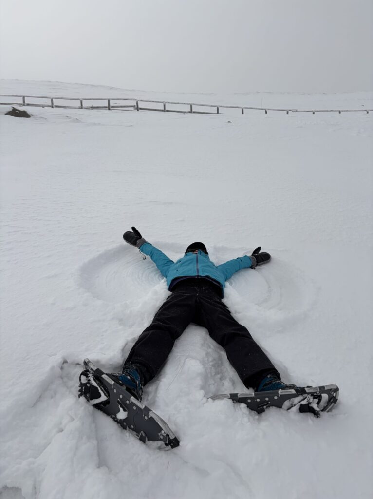 フカフカの雪に寝転んで手をバタバタさせて記念撮影。↓