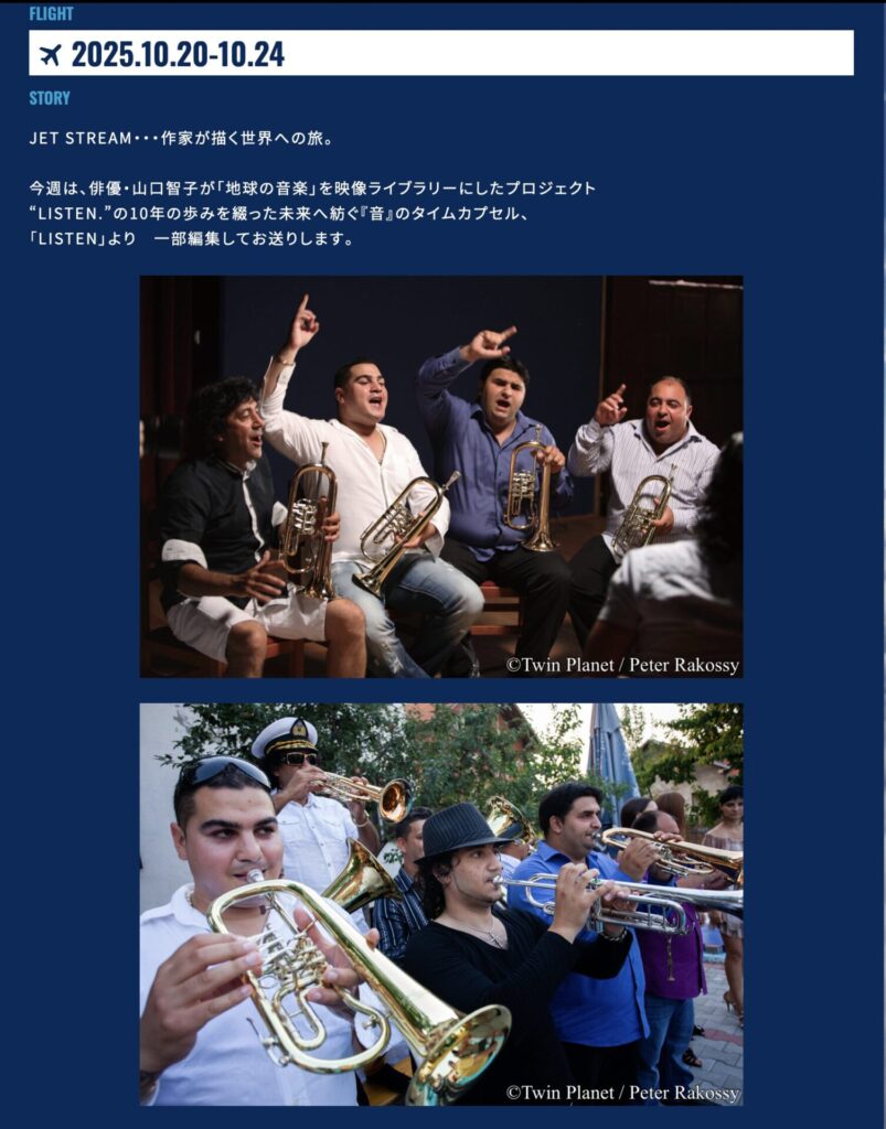 JET STREAM | 福山雅治の朗読と美しい音楽が心地良いラジオ番組 | 山口智子の「LISTEN.」| Boban Markovicのブラスバンドに魅せられた